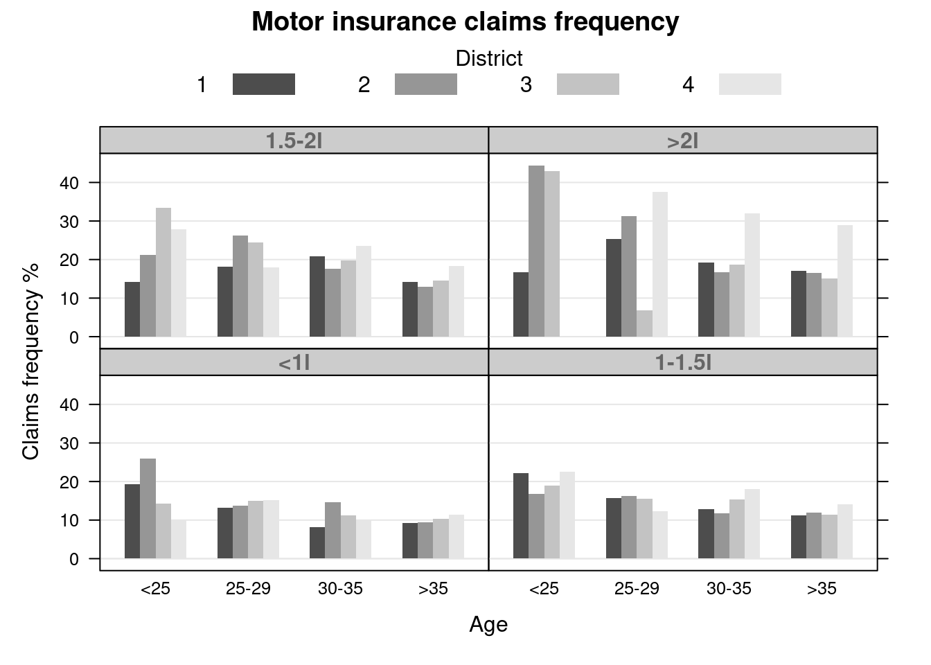 groups = District, data = Insurance,
