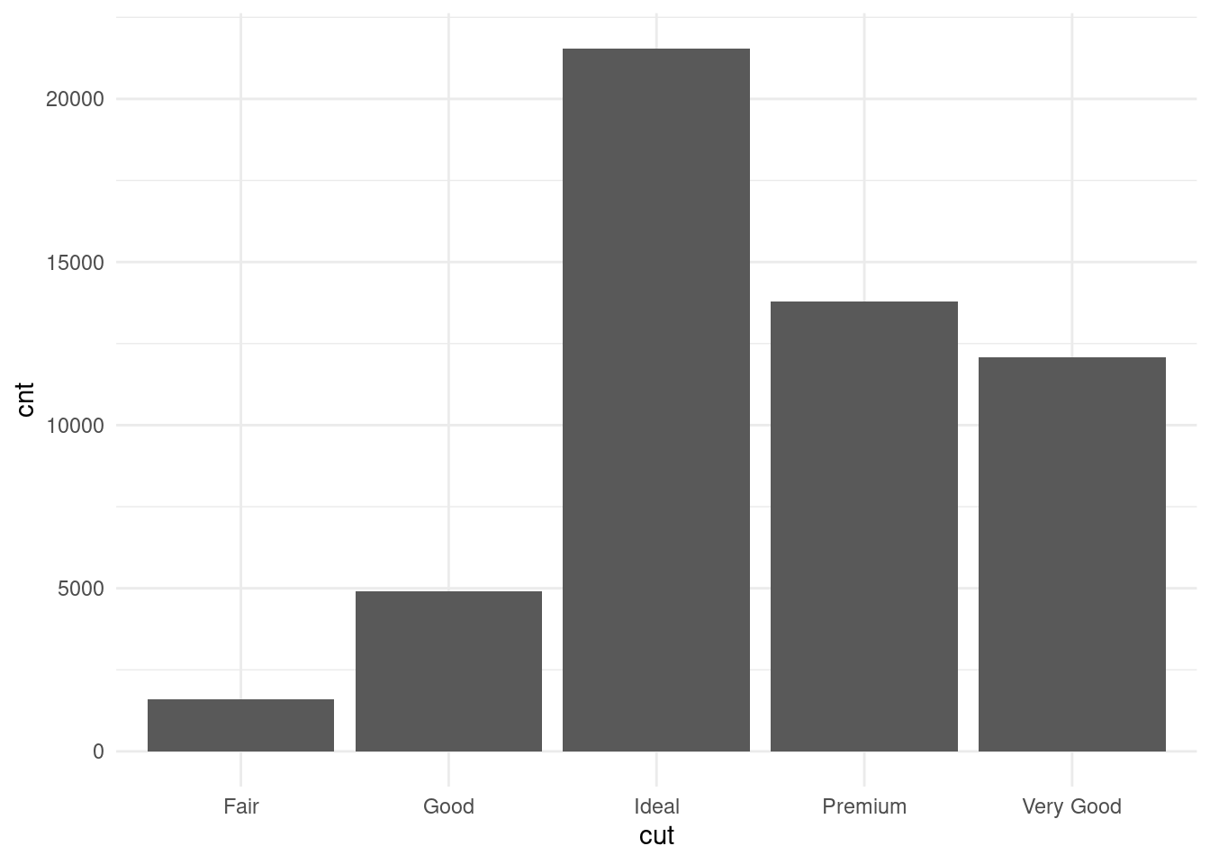 ggplot(diamonds_preview, aes(cut, cnt)) +