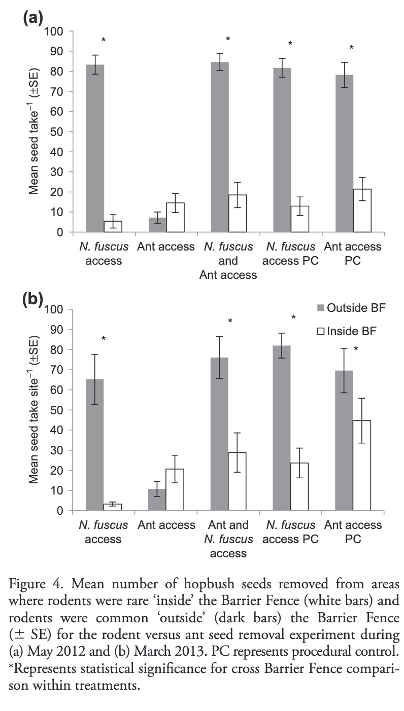 Functional extinction of a desert rodent: implications for seed fate and vegetation dynamics. Gordon and Letnic (2016) . data for project (.xlsx format), paper, full data on dryad.