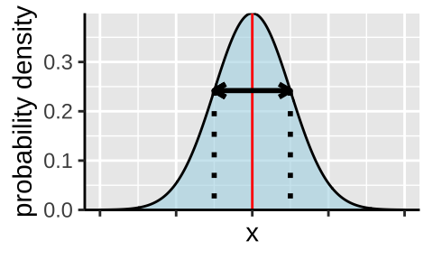 - The probability density of being some distance away from the true mean is equal regardless of direction. For example: