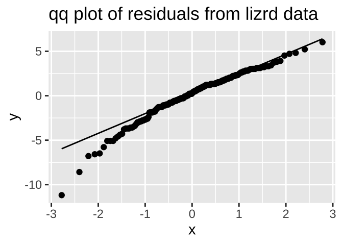 labs(title = "qq plot of residuals from lizrd data")