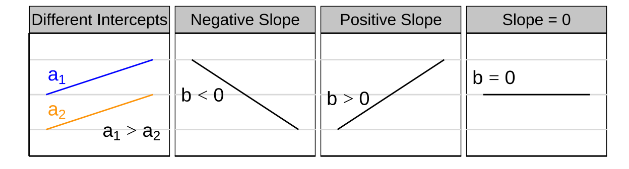 | Slope (\(b\)) | The rate at which the response variable changes with respect to the explanatory variable. | \(b = \frac{\sum{(x_i - \bar{x})(y_i - \bar{y})}}{\sum{(x_i - \bar{x})^2}}\) |