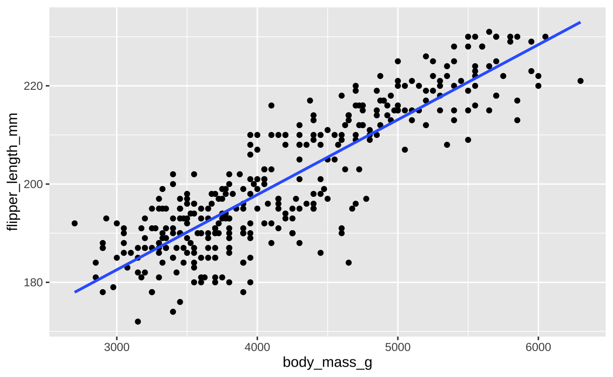mutate(predicted_flipper = coef(penguin_lm)[["(Intercept)"]] + body_mass_g * coef(penguin_lm)[["body_mass_g"]],