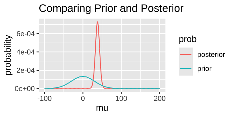 Today, we’ll arbitrarily pick a prior probability. This isn’t ideal, as Bayesian inferences are only meaningful to the extent that we can meaningfully interpret the posterior, which depends on a reasonable prior. But for this example, let’s assume our prior is normally distributed around 0 with a standard deviation of 30.