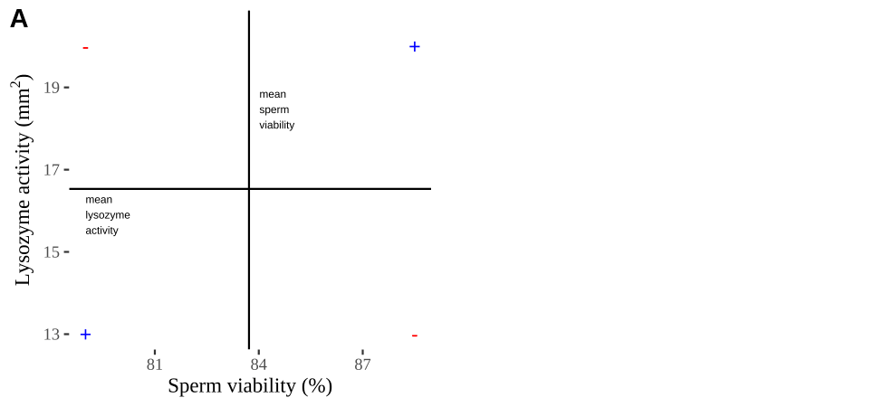 annotate(x = crickets %>% summarise(cor(spermViability, lysozyme)) %>% pull() ,