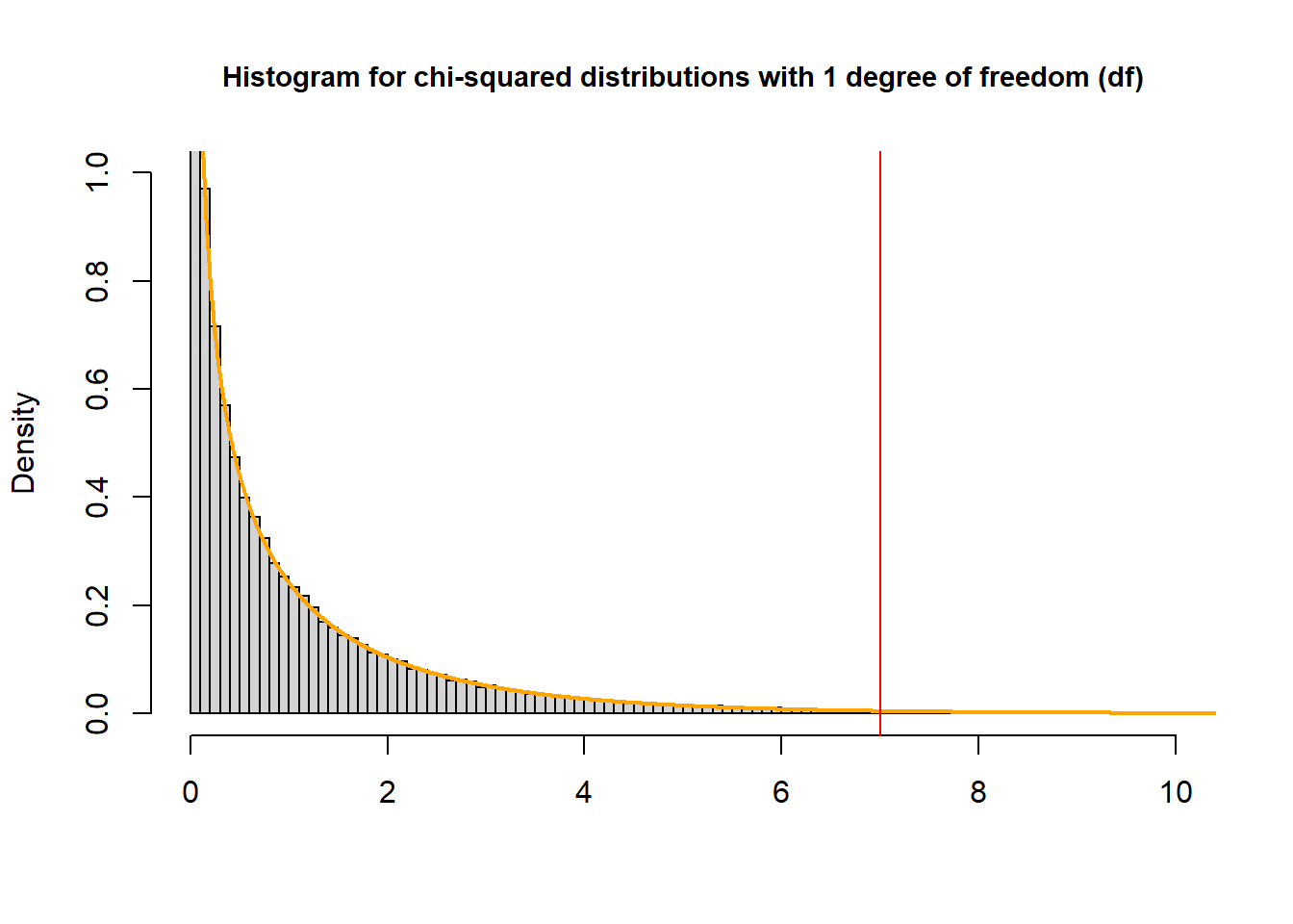 1 - pchisq(7, df=1)## [1] 0.008150972