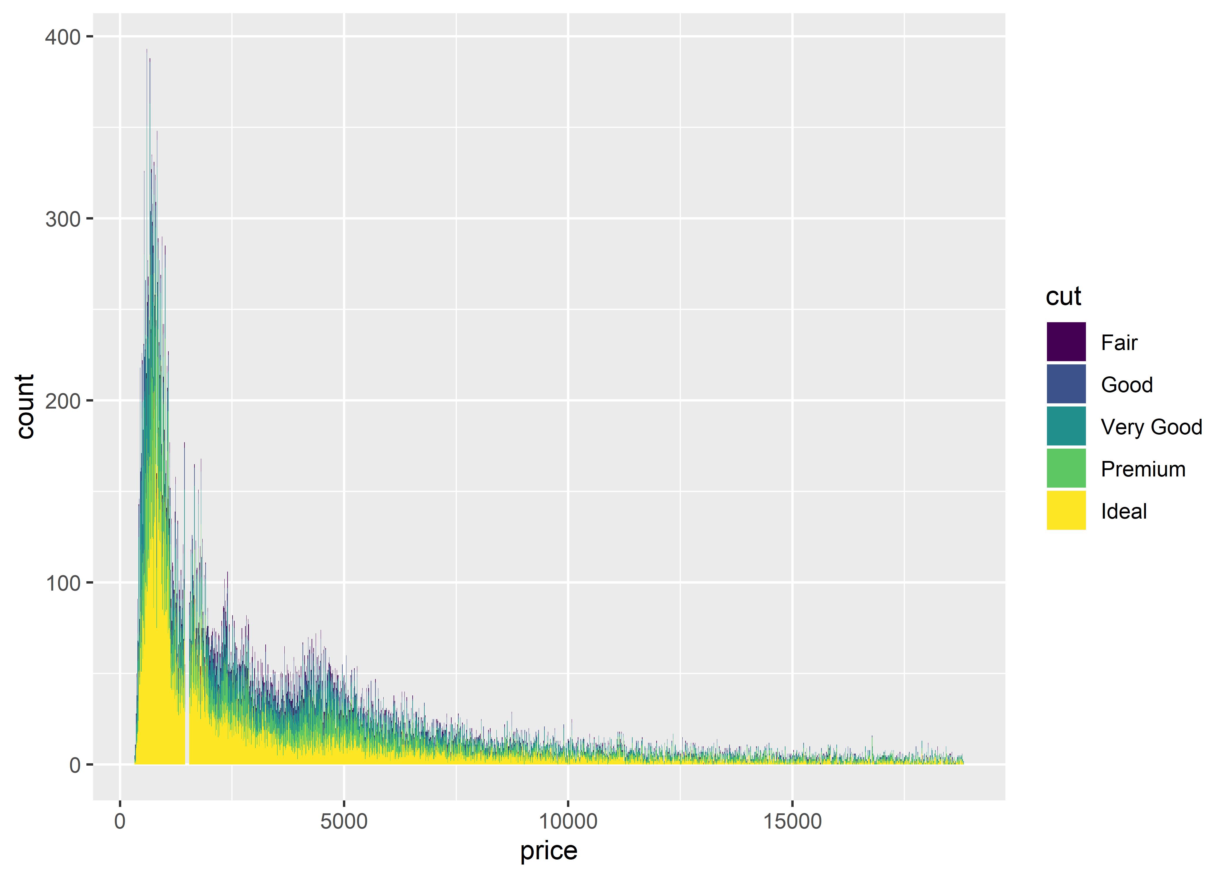 ggplot(aes(x = price, group = cut, fill = cut)) +