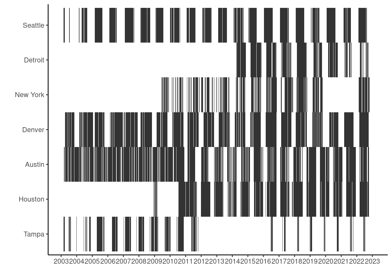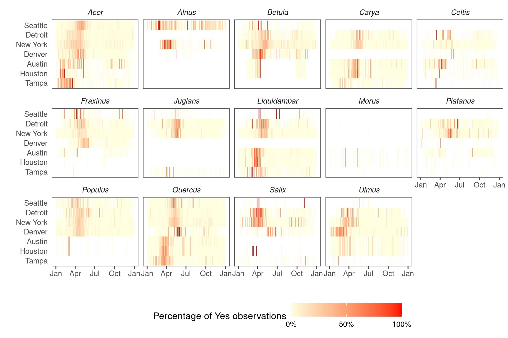Focus on seven major cities in CONUS with pollen count data and street tree inventory.