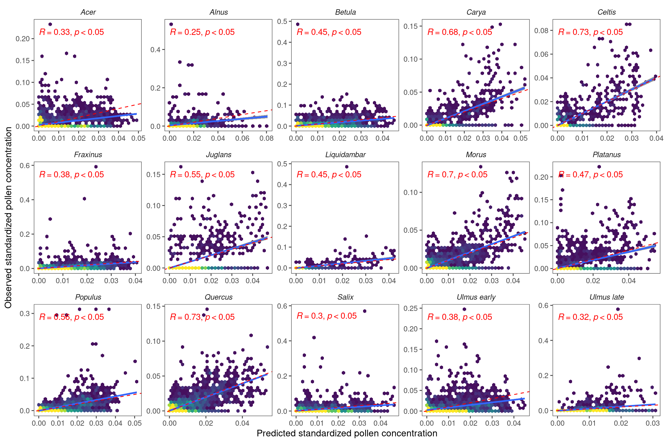 NAB data were used to calibrate and validate city-level pollen phenology.
