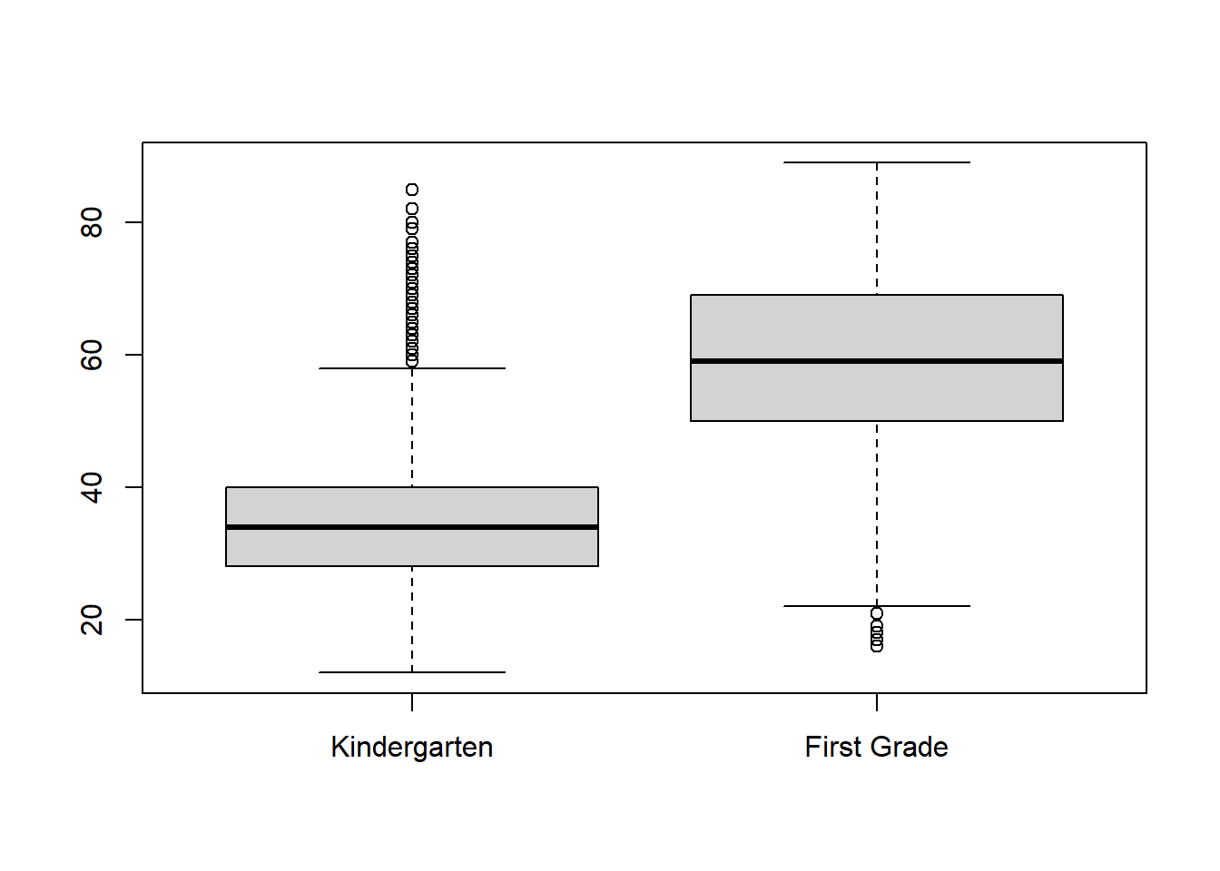 boxplot(c2rrscal,c4rrscal,names=c("Kindergarten","First Grade"))