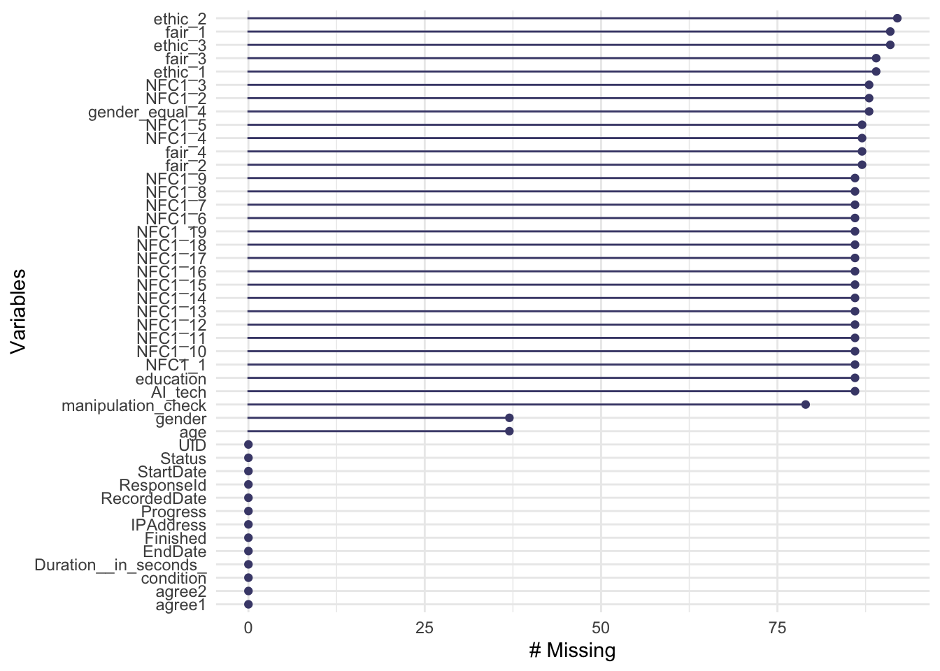 complete_data %>% select(condition_re, gender_re, age, Ethic, Fair, NFC, education, AI_tech) -> Final_data