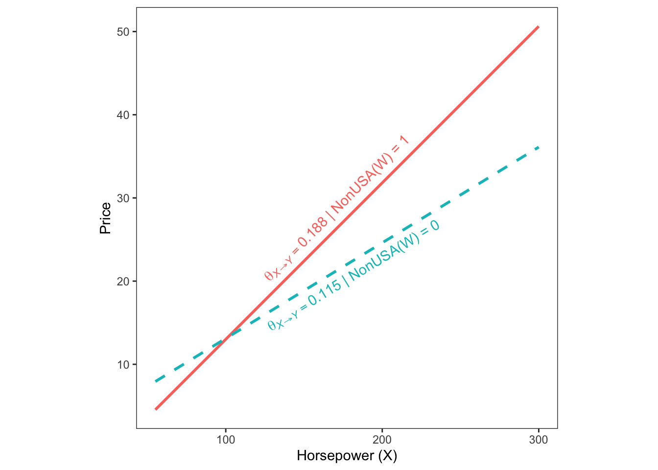labels= list(W="Horsepower",Y="Price",X="NonUSA")
