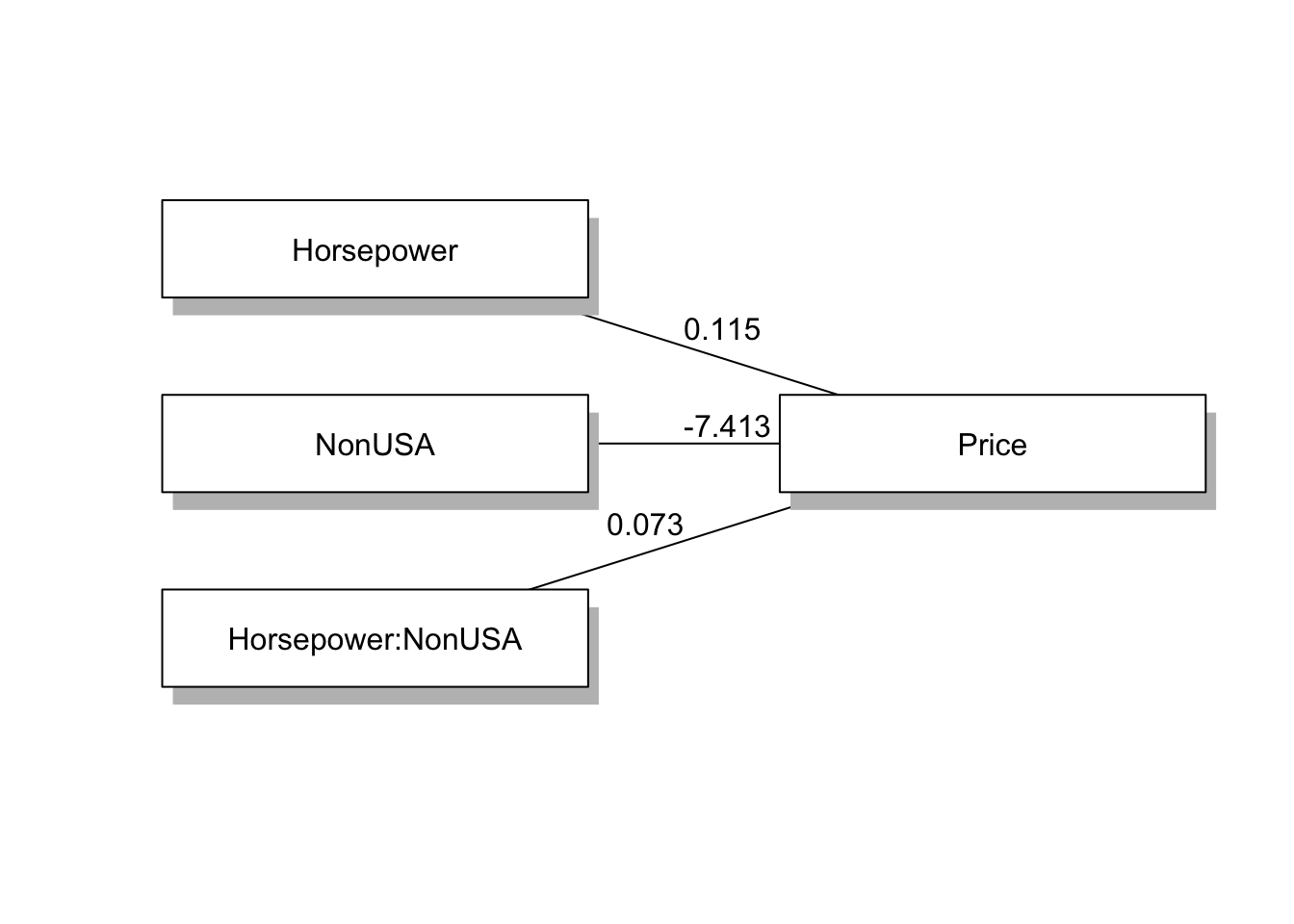 corTable2(fit)rowname | Price | Horsepower | NonUSA | Horsepower.NonUSA |
