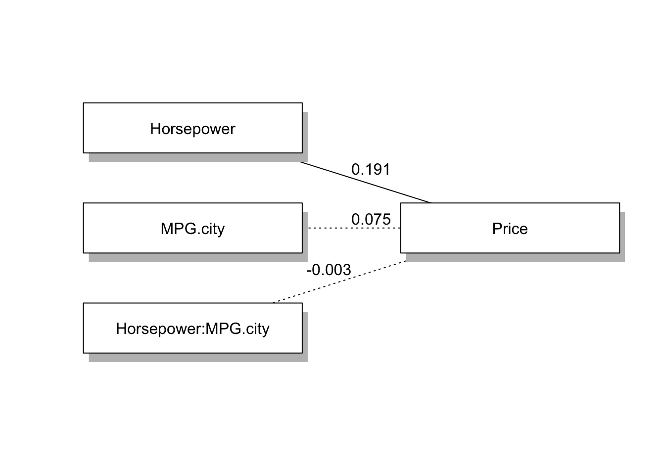Price | Horsepower:MPG.city | c3 | -0.003 | 0.002 | -1.462 | 0.144 | -0.250 |