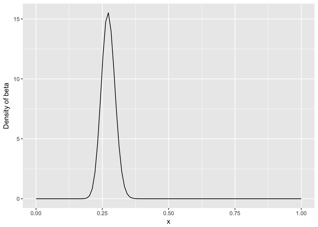 均值为\(\frac{\alpha}{\alpha + \beta} = \frac{81}{81+219} = 0.27\)