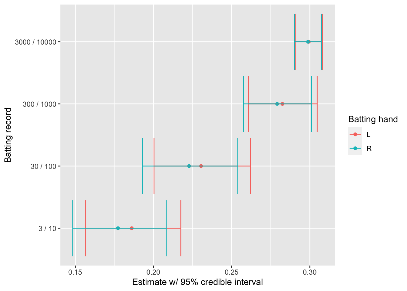 棒球击球率的预测问题,你不可能预测一个刚打出本垒下一个也击中,会有一个先验概率