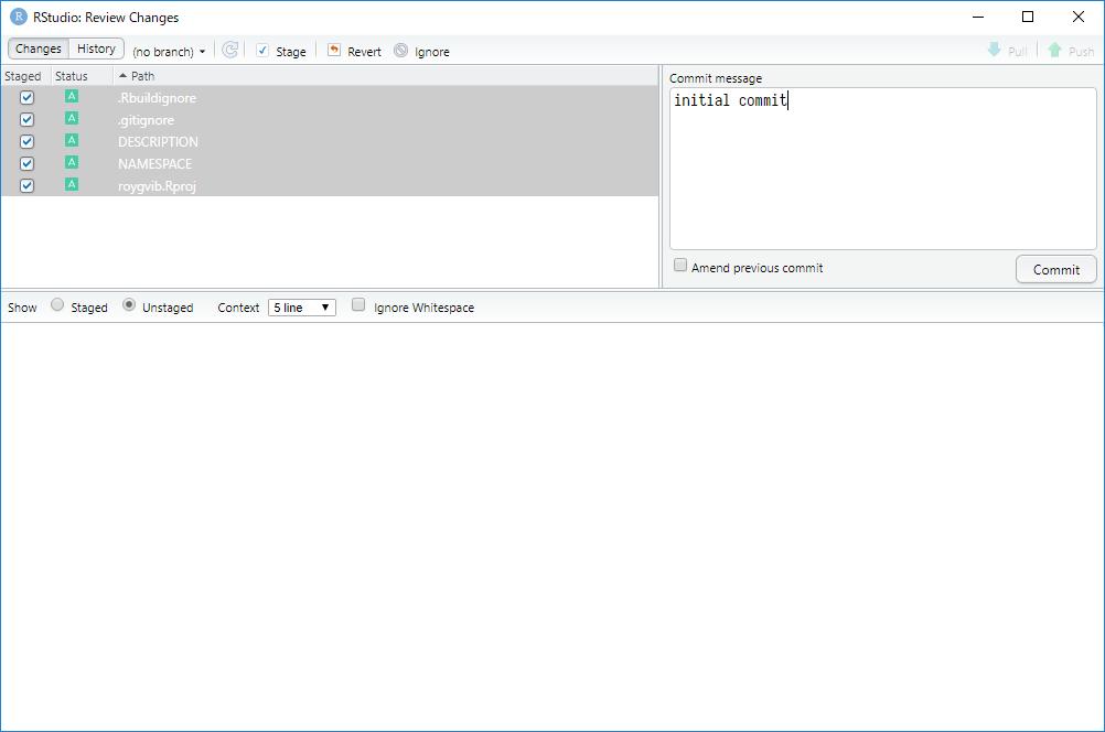 ところで、このREADME.Rmdをさっそくコミットしようとすると以下のようなエラーメッセージを見ることだろう。