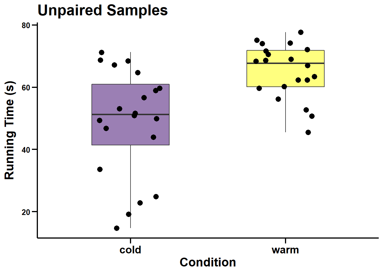 labs(title = "Unpaired Samples", x = "Condition", y = "Running Time (s)") +