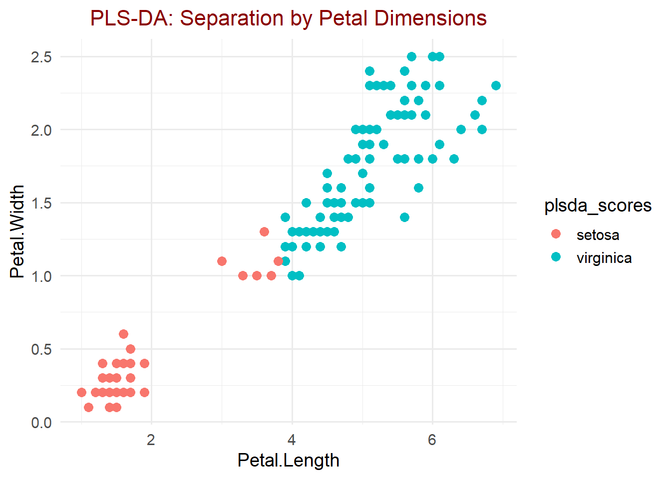 ggtitle("PLS-DA: Separation by Petal Dimensions") +