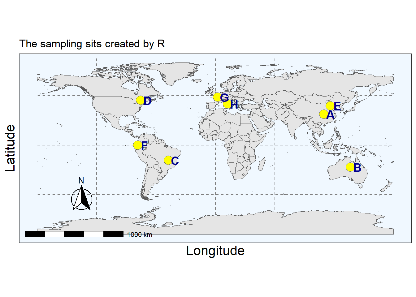 Many articles need to use maps to display some data. Professional drawing software such as ARCGIS is more expensive and takes a long time to learn. The advantage of drawing with R is that everyone can install R and R maps have no copyright issues and are easy to use. The main R packages used are ggplot2, sf, rnaturalearth, rnaturalearthdata, etc. When you need to modify the picture, you only need to modify the code, which eliminates the cumbersome modification of the picture.